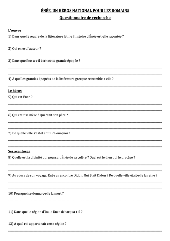 Questionnaire Enée