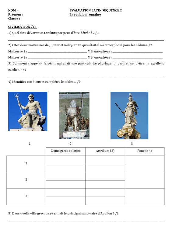 La religion romaine : les dieux de l'Olympe, Jupiter et Junon, Apollon, la 1ère et la 2ème déclinaison, le présent de l'indicatif.